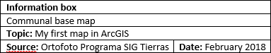 The cards or boxes allow you to add information to the map. You can include the names of those responsible for its elaboration, the name of the project or program, logos, the source of the cartographic inputs, date of elaboration, working scale, etc.