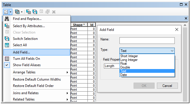 Practice: Add new fields to shapefiles and configure their name, type and properties as shown in Table 2.