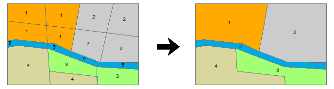 This tool unifies geographic information on the basis of an attribute; in other words, it merges information that shares an identical value within the attribute table. Figure 37 shows that all polygons containing a common attribute are merged. For example, this tool is used when a layer of districts is required to obtain a layer of regions. However, in this case the table associated with the districts must have a field indicating the region to which each district belongs. To open the Dissolve tool, go to: