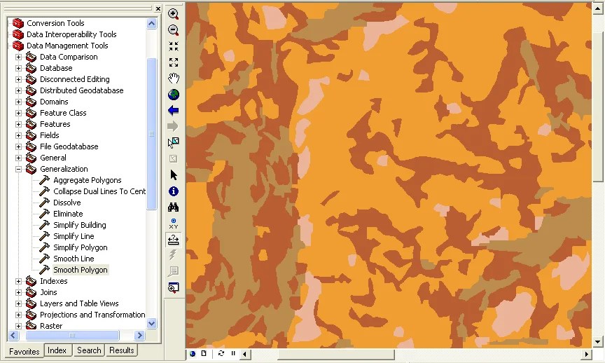 The generalization tools in ArcGIS allow information to refine or cleaning, in order to delete incorrect or unnecessary data, automating