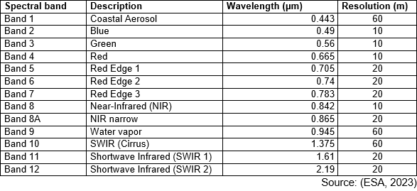 Spectral Bands of the Sentinel-2 Satellite.