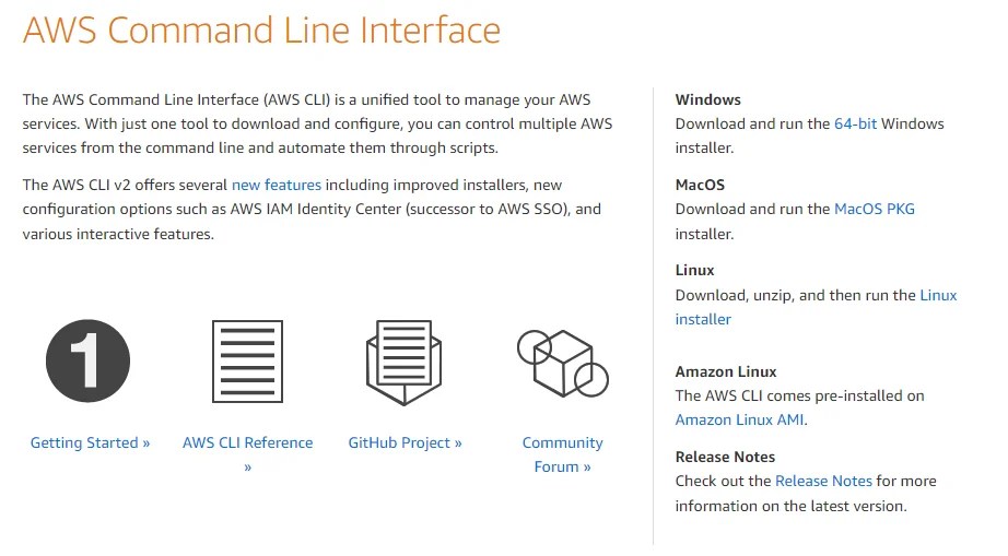 - Visit the AWS CLI website to download the appropriate installer for your operating system at AWS CLI.