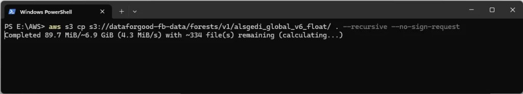 aws s3 cp s3://dataforgood-fb-data/forests/v1/alsgedi_global_v6_float/ . --recursive --no-sign-request