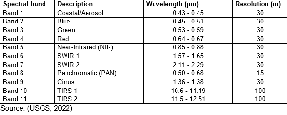 Electromagnetic Bands of Landsat 8/9 Satellite.