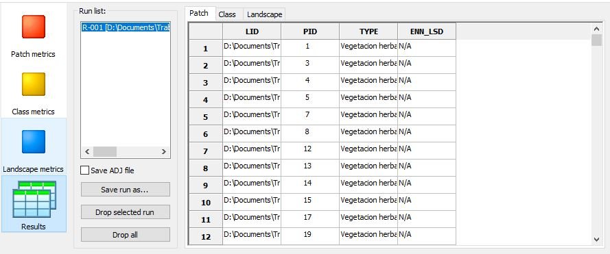 6. In Patch metrics, we select the option of Landscape Standard Deviation (LSD).