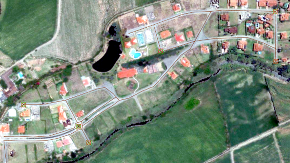 When precise ground coordinates for control points are not available, existing vector layers such as roads, buildings, or trees can be used to support the georeferencing process. These layers provide identifiable features that are present both in the raster image and the vector data.