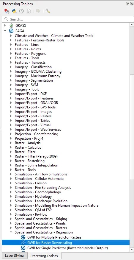 Toolbox > SAGA > Spatial and Geostatistics – Regression