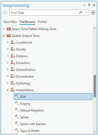 Step 3: Go to the “Analysis” tab and open the “Geoprocessing” pane. Search for the “IDW (Inverse Distance Weighted)” tool and select it.