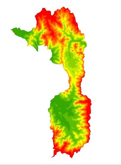 The resulting map shows the interpolated elevation data. The red areas represent higher elevations, while the green areas represent lower elevations.