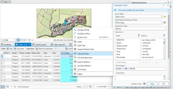Operations with “Calculate Field” in ArcGIS Pro.