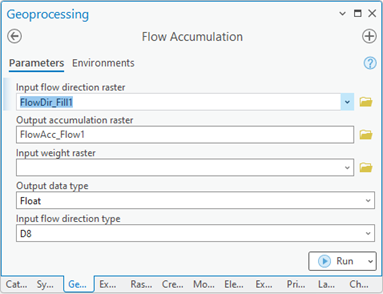 Configuration of the “Flow Accumulation” tool.