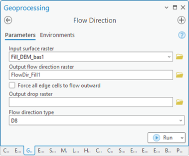 Configuration of the “Flow Direction” tool.