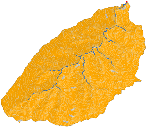 Automatically delineated watershed along with its water network.